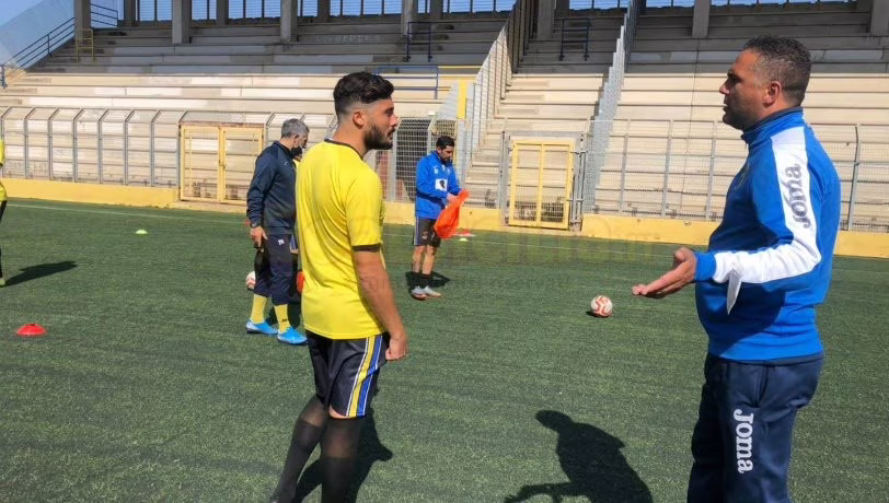 Al termine della rifinitura, il tecnico del Biancavilla, Orazio Pidatell