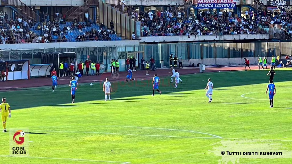 PRIMO TEMPO: Alla prima occasione del match il Catania passa in vantaggio: al 4’, sugli sviluppi di un calcio di punizione, Vitale devia il colpo di testa di Sarao e insacca in rete il pallone dell’1-0. Al 10’ Vibonese che ha già l’occasione per pareggiare i conti con Anzelmo, la sua conclusione però è debole e centrale e non impensierisce l’estremo difensore etneo Bethers. Al 12′ padroni di casa pericolosi con Forchignone che, con un ottimo passaggio filtrante, cerca Sarao che però non riesce ad arrivare sul pallone per una questione di millimetri. Al 20’ ripartenza pericolosa del team etneo, con Forchignone, fermata in maniera irregolare da Basualdo, l’arbitro non ha dubbi ed estrae il secondo cartellino giallo nei confronti del numero 14 calabrese. Vibonese che, dopo appena 20 minuti di gioco, resta in inferiorità numerica. Al 30’ a rendersi pericoloso è ancora il team di mister Ferraro con Sarao che raccoglie una corta respinta della difesa e prova il tiro, il suo diagonale termina di poco a lato. Al 32’ a provarci è Forchignone che, ottimamente servito da un lancio di Lodi, prova il tiro dal limite dell’area, conclusione che però non centra lo specchio della porta. Al 35’ occasionissima per Sarao che, dopo aver saltato l’estremo difensore calabrese, prova la conclusione da lontanissimo, Nallo salva tutto sulla linea di porta. Al 45’ Lodi cerca l’eurogol, quasi da centrocampo, con una splendida conclusione al volo, nessun problema per Rendic che blocca la sfera. Dopo un minuto di recupero l’arbitro fischia la fine della prima frazione.