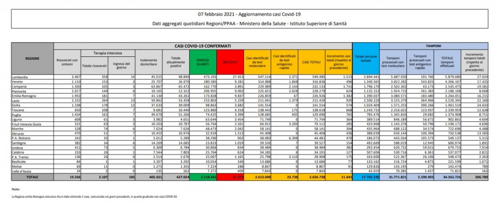Emergenza Coronavirus, bollettino: i numeri di domenica 7 febbraio