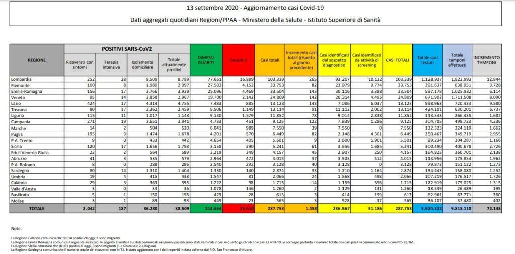 In tutto il Paese, dall’inizio dell’epidemia, 287.753 persone hanno contratto il virus. Di queste, 35.610 sono decedute e 213.634 sono guarite.