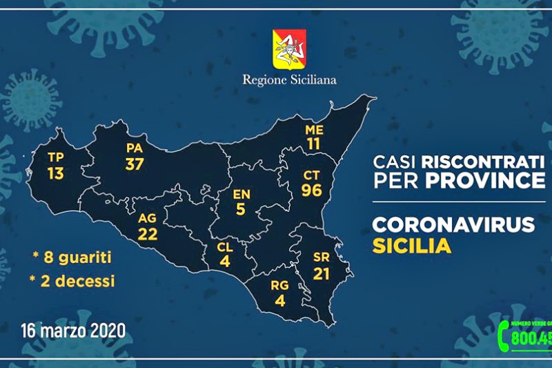 Si raccomanda di attenersi scrupolosamente alle indicazioni fornite dal Ministero della Salute per contenere la diffusione del virus. Per ulteriori approfondimenti visitare il sito dedicato www.siciliacoronavirus.it o chiamare il numero verde 800.45.87.87.