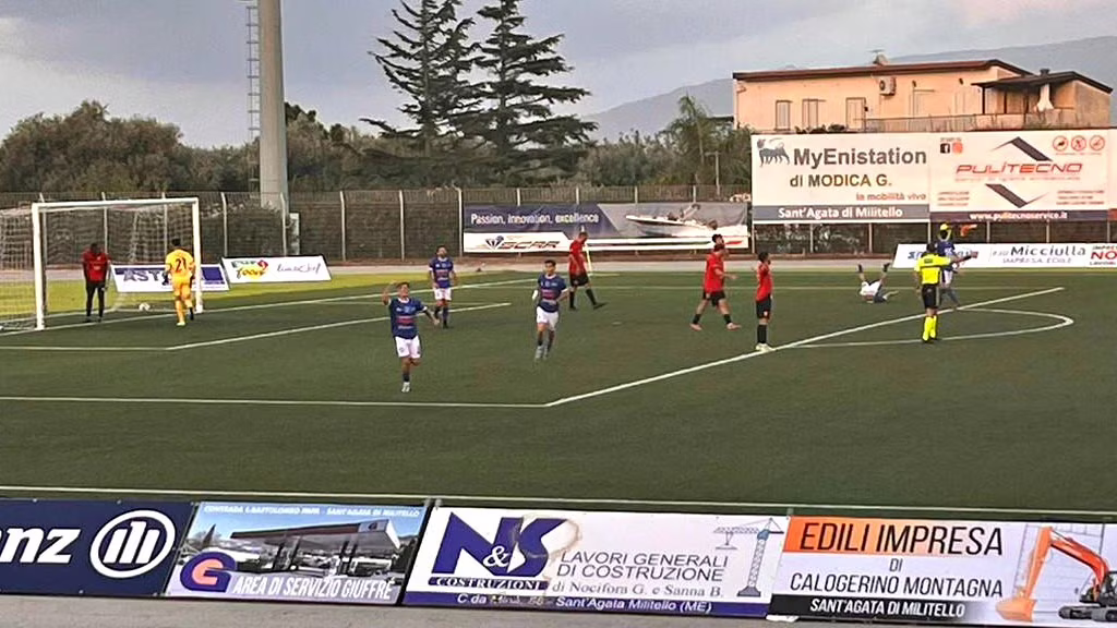 SECONDO TEMPO: Al 56’ il Sant’Agata passa di nuovo: Aquino dal limite calcia e trova una deviazione che fa finire la palla sui piedi di Carrozzo che dal fondo mette dentro scavalcando anche Gonzalez, e Mincica a porta vuota appoggia per il vantaggio dei padroni di casa. Al 62’ Calagna recupera un buon pallone al limite e calcia ma non trova la porta. Al 78’ arriva il poker del Sant’Agata: Capogna recupera un pallone sulla trequarti e lo porta fino a dentro l’area dove calcia ma trova la deviazione di un difensore, con il pallone che termina tra i piedi di Lo Grande che da due passi, buca Gonzalez.