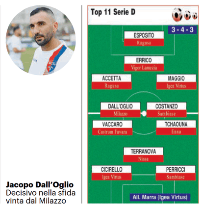 MILAZZO – Meritato giorno di riposo per il Milazzo, reduce dal successo casalingo contro il Gela, firmato da un calcio di punizione perfetto di Jacopo Dall’Oglio, tornato finalmente protagonista dopo un lungo periodo condizionato dai problemi fisici.