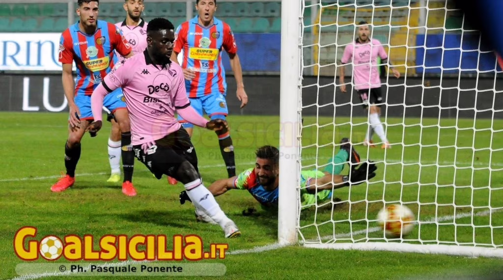 Mamadou Kanoutè, attaccante del Palermo in gol contro il Catania, così come ripor