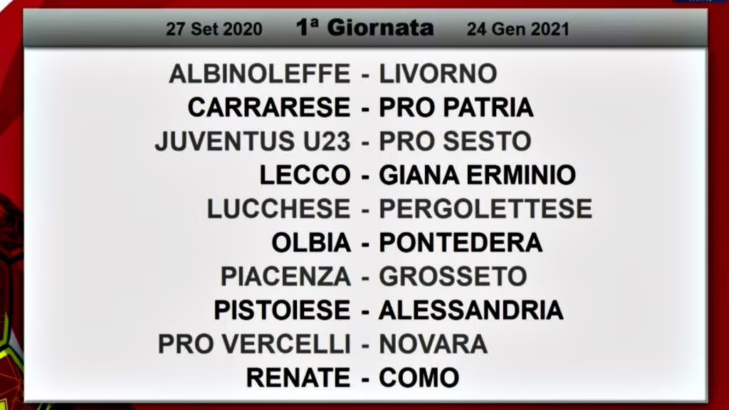 Questa la prima giornata del campionato 2020/21 di serie C, girone A, in program