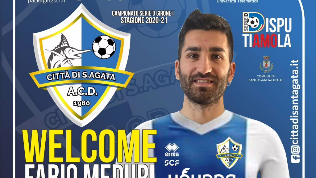 Colpo di mercato per il Sant’Agata: come avevamo anticipato, il club biancazzurro ha annunciato l’arrivo del centrocampista Fabio Meduri, classe ’91 cresciuto nelle giovanili dell’Atalanta. In passato il calciatore ha vestito le maglie di Monza, Foggia, Ischia, Barletta, Cosenza, Lumezzane , Monopoli e Triestina, tra i professionisti, e Campobasso, Como, Ponte San Pietro e Calvina in Serie D.